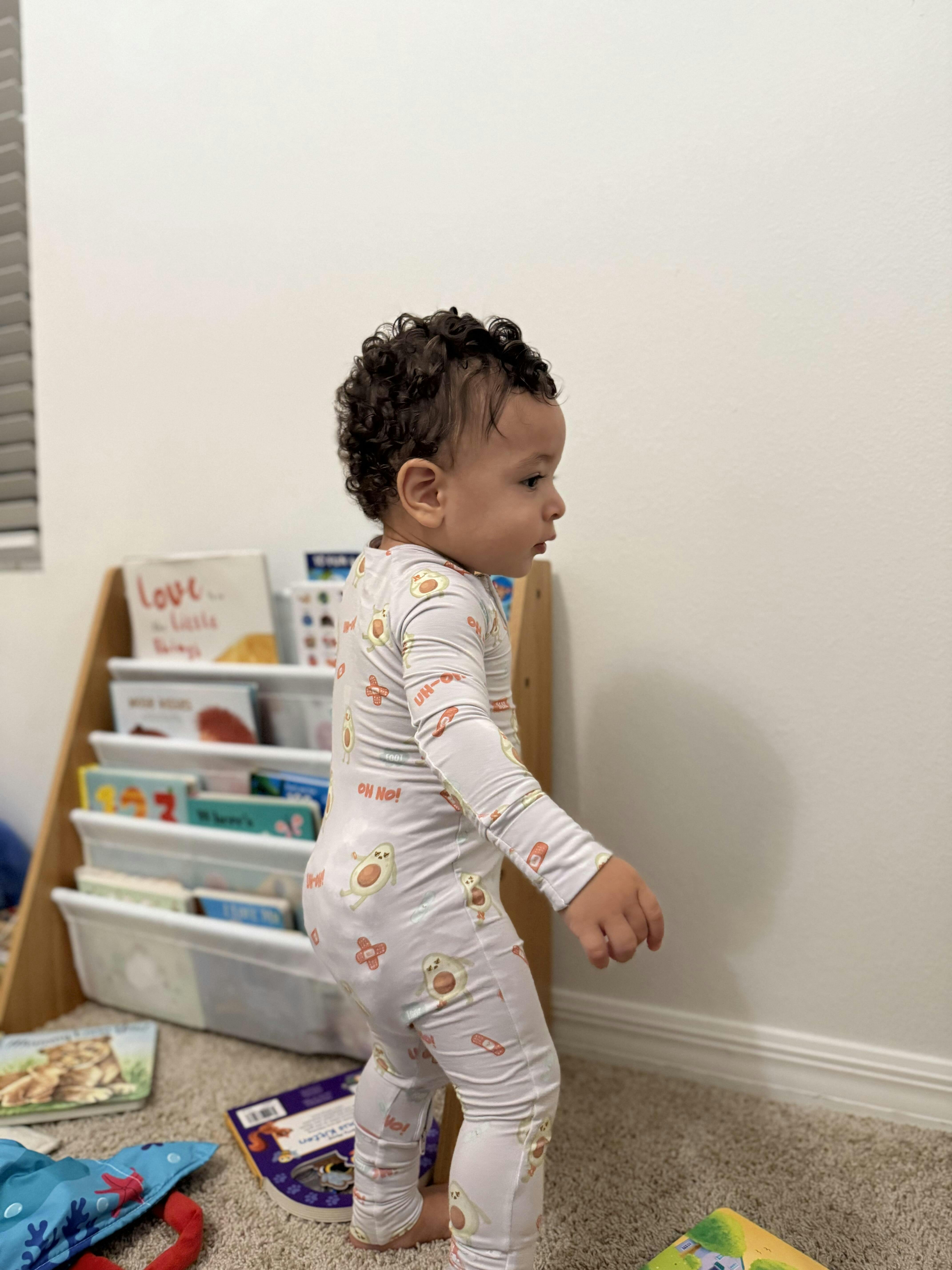 Made with buttery-soft, GOTS-certified bamboo, this zip onesie is breathable, hypoallergenic, and built for real-life wiggles, cuddles, and cleanups. Designed by early childhood experts to support body awareness, first words, and parent-child connection—especially during dressing and diapering routines.